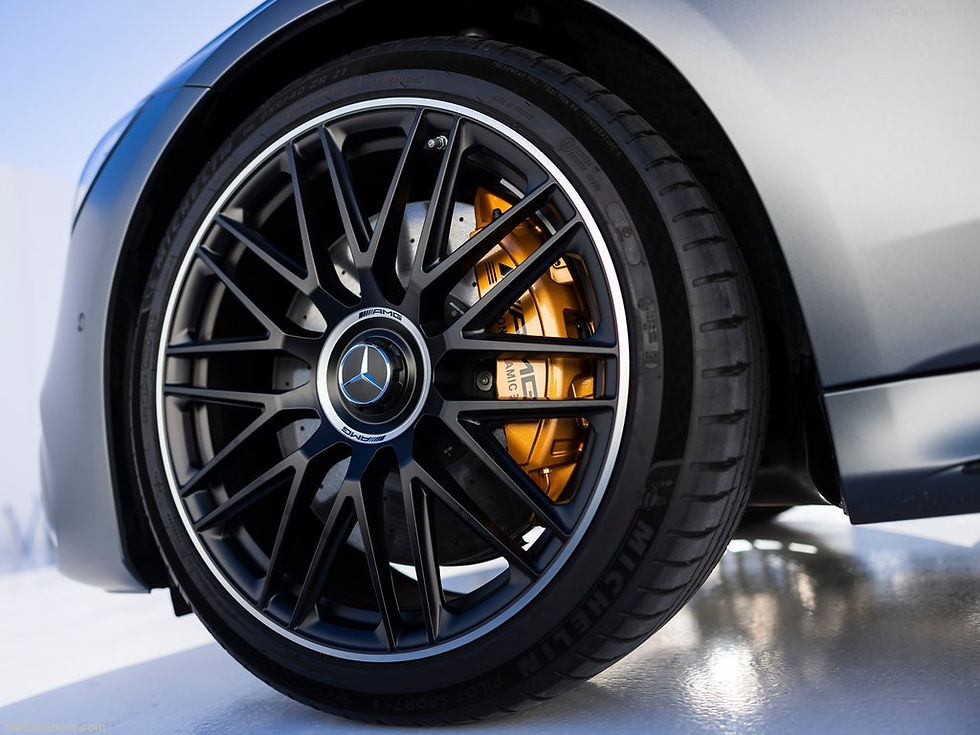 The AMG wheels are wider to accommodate the bigger brakes too, and for the first time, carbon ceramics are an option. These provide fade-free performance on a hot day and are supplemented by 10 piston calipers in the front 400mm discs in the front. The rear benfits form 380mm discs in the rear with 6 piston calipers, as well as a limited slip differential that splis te power and full torque between each wheel, to give the ca ultimate powe through corners. On a car this big adaptve dampers come as standard to either have the suspension on clouds or as stiff as cobbled roads on a trolley for ultimate track use.